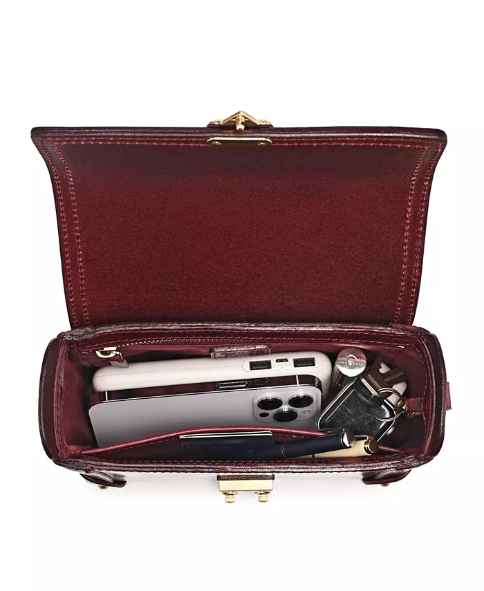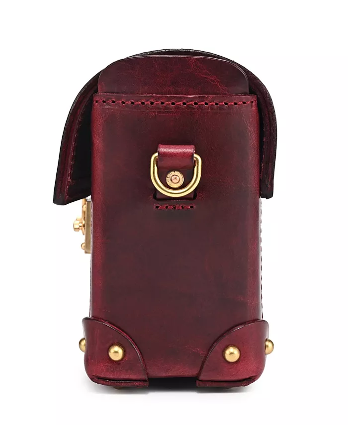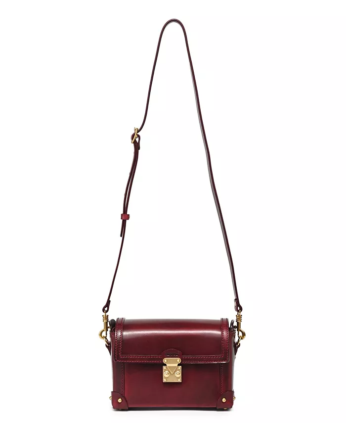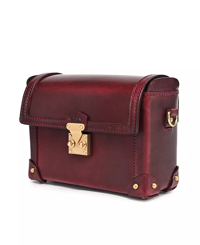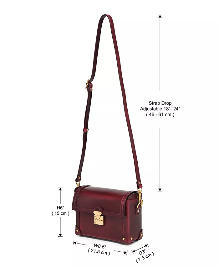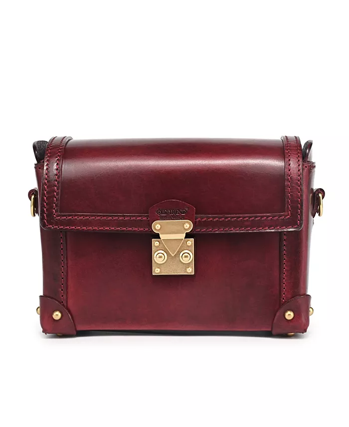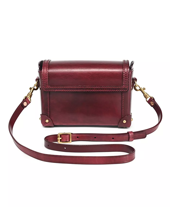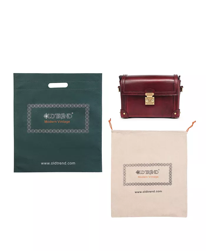 OLD TREND Azalea Vintage Leather Case Crossbody выделяется как сумка в форме куба с полированной отделкой, стилизованная под мини-сундук. Она имеет откидной клапан с надежной застежкой-защелкой и широкое отверстие для легкого доступа к своему просторному отделению. Детали ручной прострочки и кожаные нашивки с заклепками защищают каждый угол, что делает ее идеальной как в качестве вневременной винтажной сумки через плечо, так и в качестве шикарного ящика для хранения ценных вещей.
