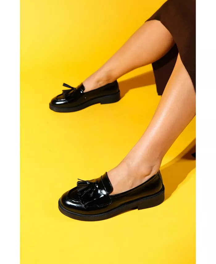 Милли Лоферы с кожаными кисточками Forever & Always Shoes, черный