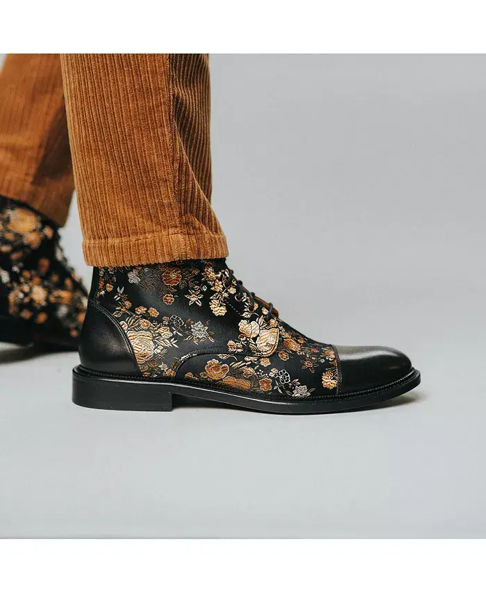 Носок с накладкой из натуральной кожи, верх из жаккардового хлопкового переплетения с цветочным узором