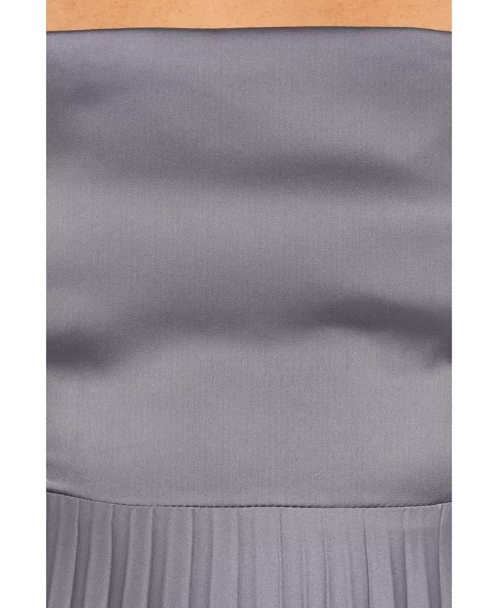 Представьте себя в платье, которое скользит при каждом шаге благодаря роскошной атласной отделке с блеском. Плиссированная юбка добавляет нотку изысканности, создавая прекрасный поток, который привлекает внимание и вызывает восхищение.