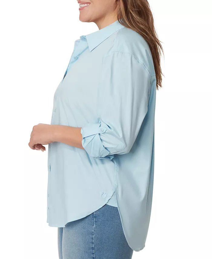 Эта рубашка большого размера из хлопка от Gloria Vanderbilt, застегивающаяся на пуговицы, имеет свободный крой, создающий непринужденный образ, и универсальные рукава с отворотами.