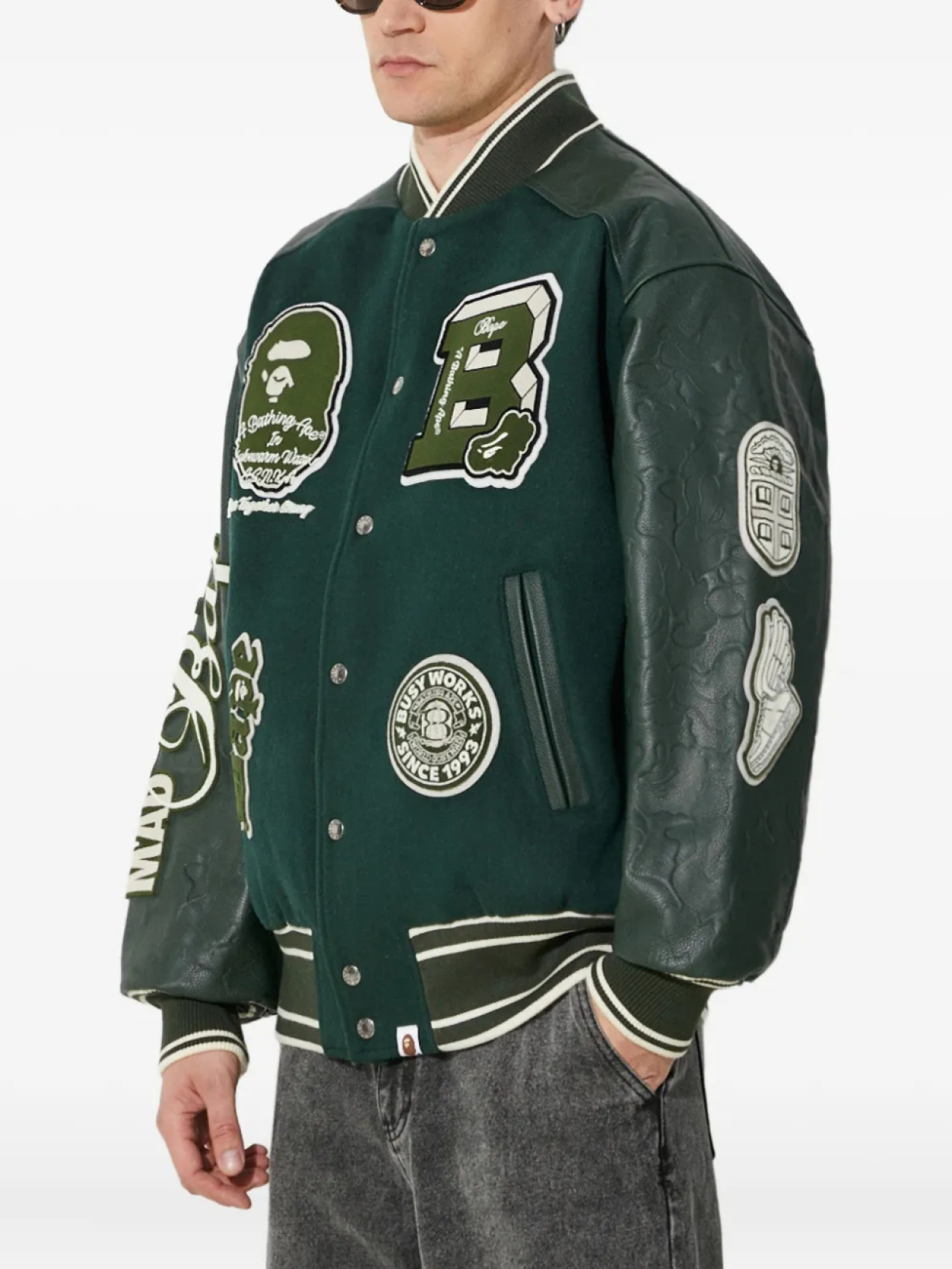 A BATHING APE бомбер со вставками, зеленый