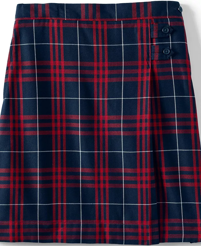 Школьная юбка для девочек в клетку, А-силуэт, ниже колена Lands' End, синий 6 533₽