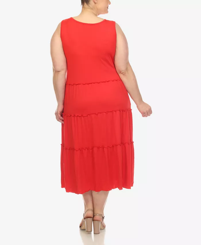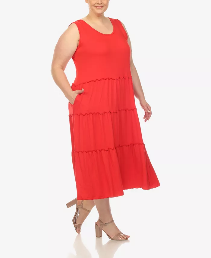 Платье миди с круглым вырезом и ярусами, plus size White Mark, красный