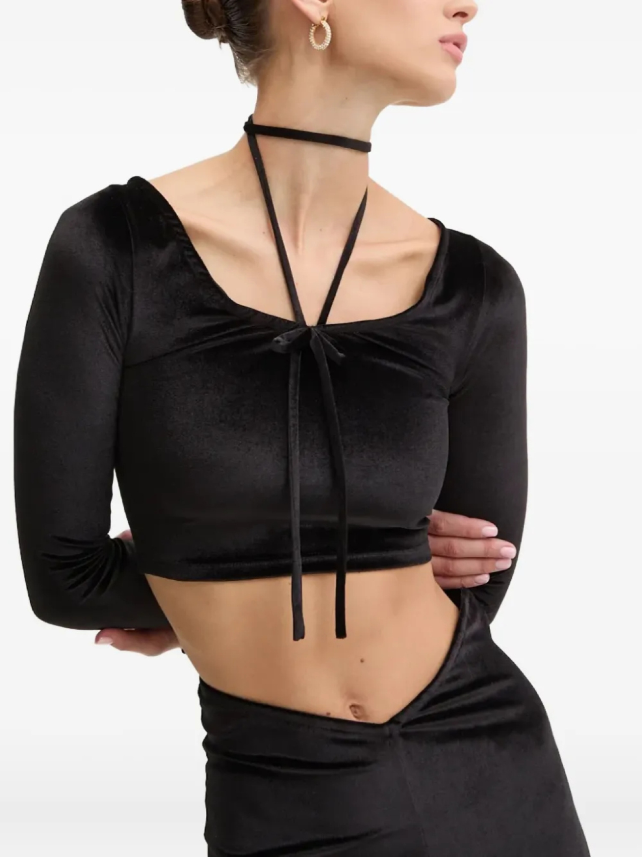 Бархатный топ Fiorucci с завязкой на шее, черный 30 964₽