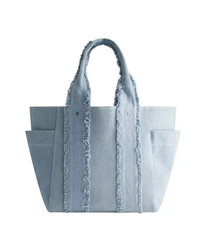Сумка-шоппер из плотного денима с бахромой на ручках True Religion, синий