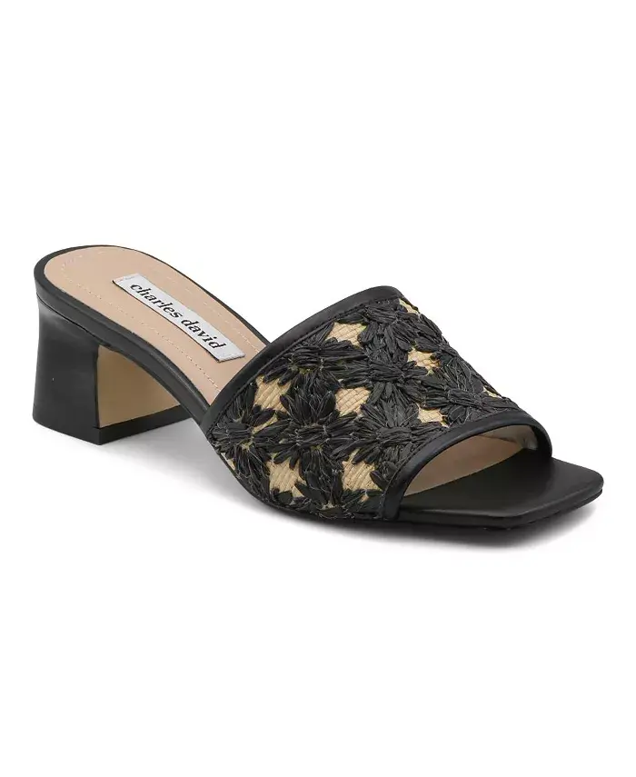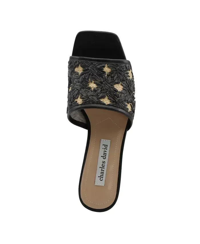 Плетеная рафия украшает ремешок этих шлепанцев с квадратным носком и обтянутым блочным каблуком.