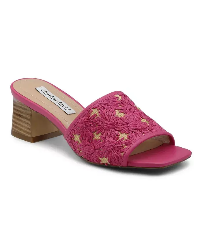 Плетеная рафия украшает ремешок этих шлепанцев с квадратным носком и обтянутым блочным каблуком.