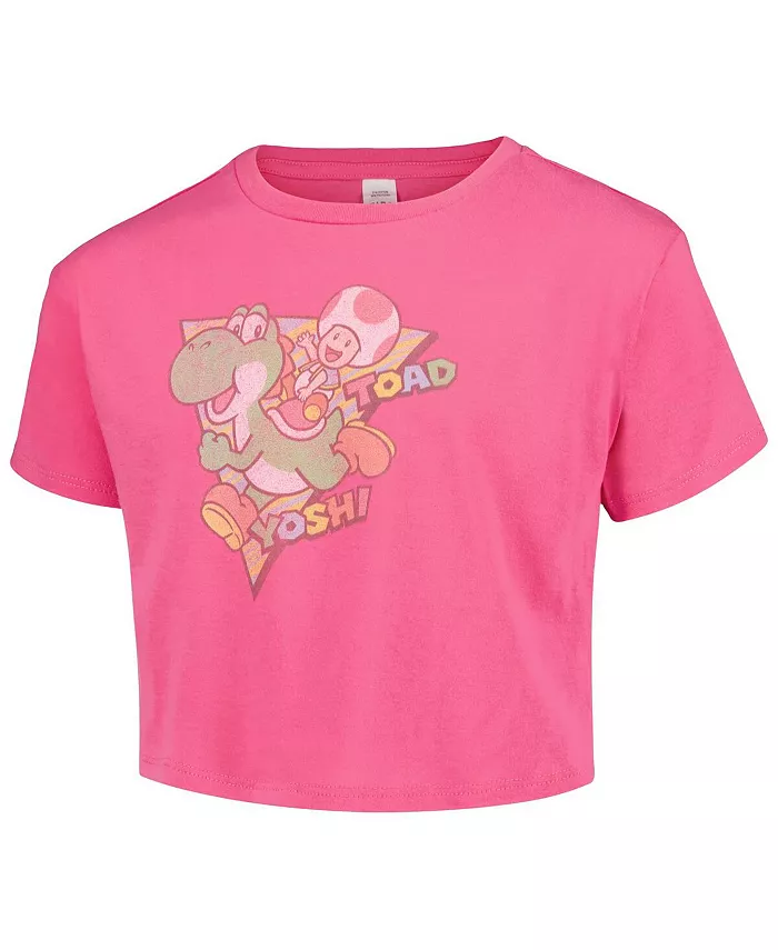 Футболка укороченная розовая с героями Nintendo Yoshi и Toad для девочек Mad Engine