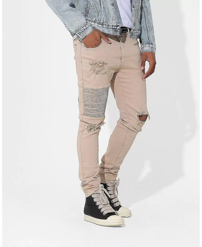 Мужские рваные джинсы Index Distressed Biker SAINT MORTA, коричневый/бежевый