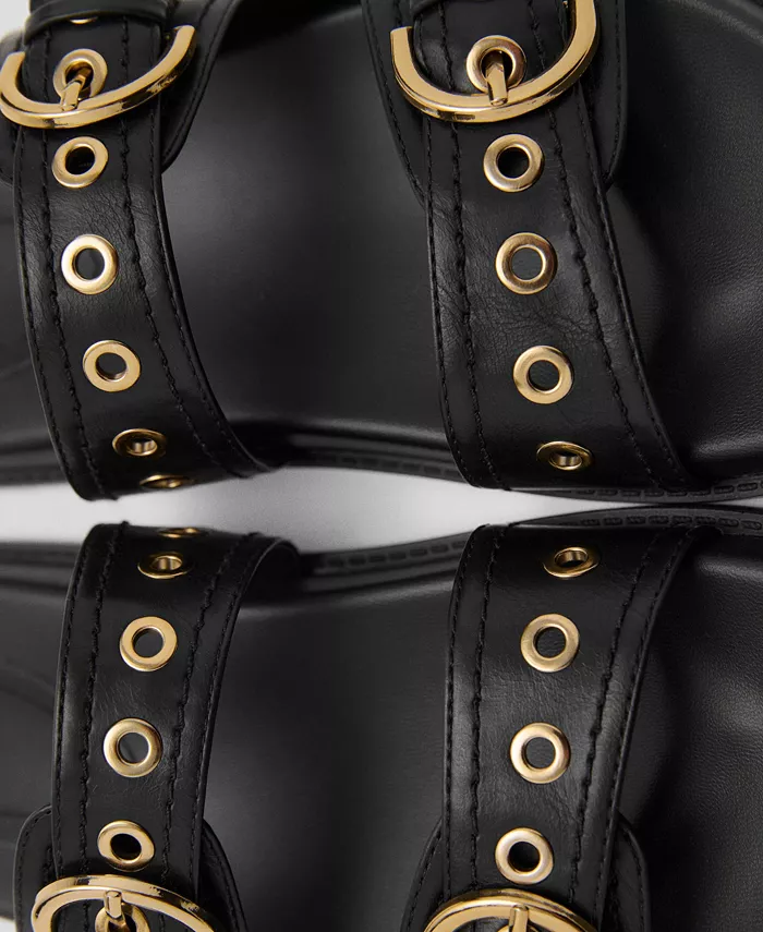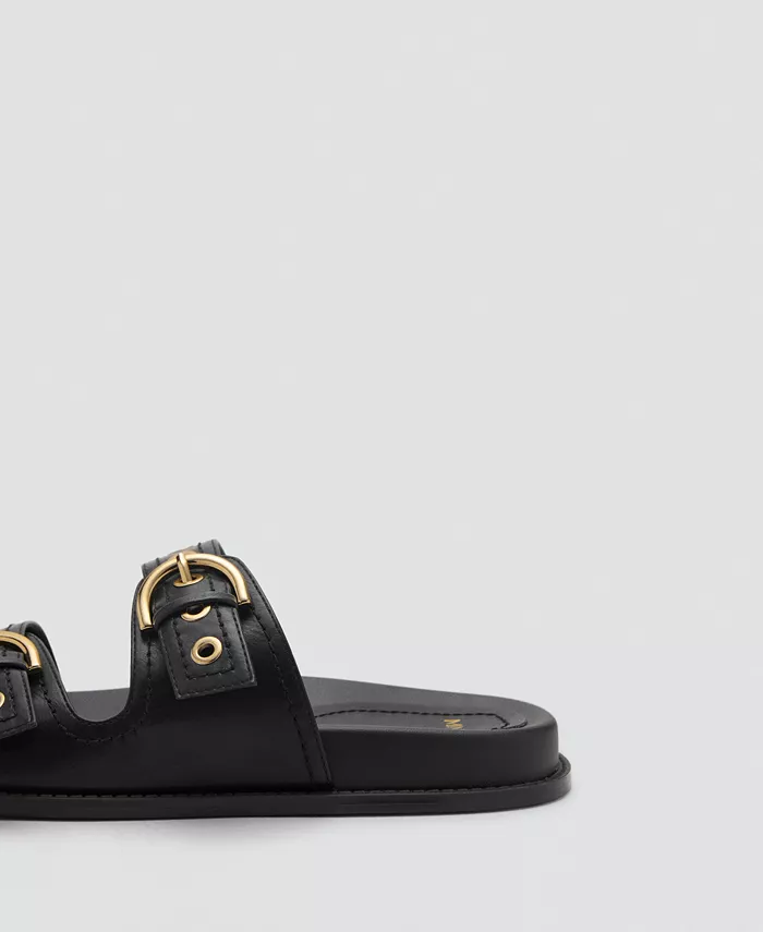 Сделайте каждый шаг легким с Strap Sandals With Buckle от Mango. Эти сандалии имеют дизайн с ремешками и плоский каблук.