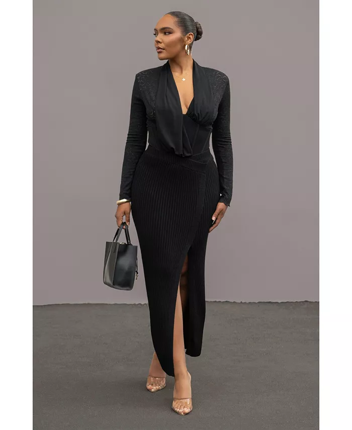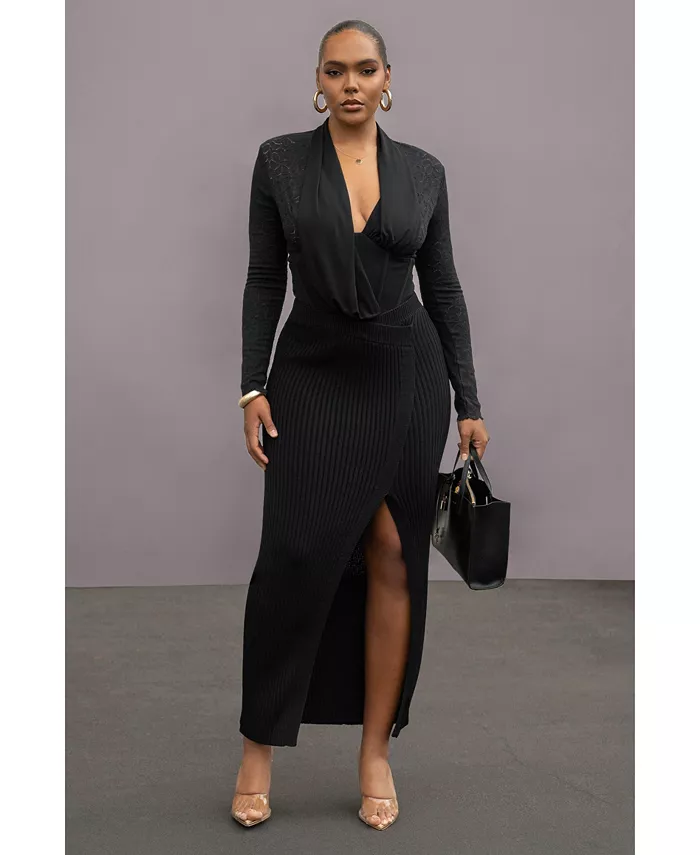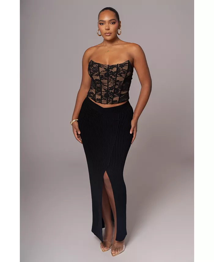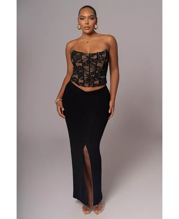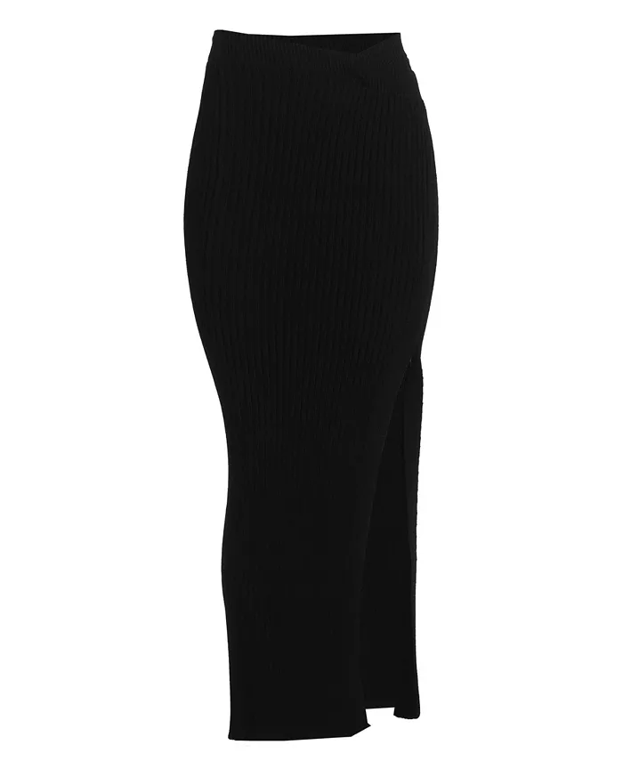 Подчеркните свой стиль с помощью элегантной и утонченной юбки Black Hamptons Ribbed Slit с шикарным разрезом сбоку.