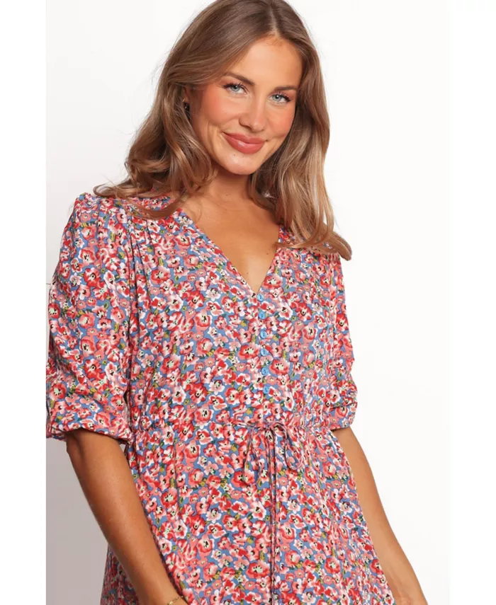 Функциональные пуговицы украшают лиф, а на талии он собран с помощью завязки для забавного взгляда на женственность. Из-за свободного кроя этого платья рекомендуется, если вы находитесь между размерами, выбирать на размер меньше.