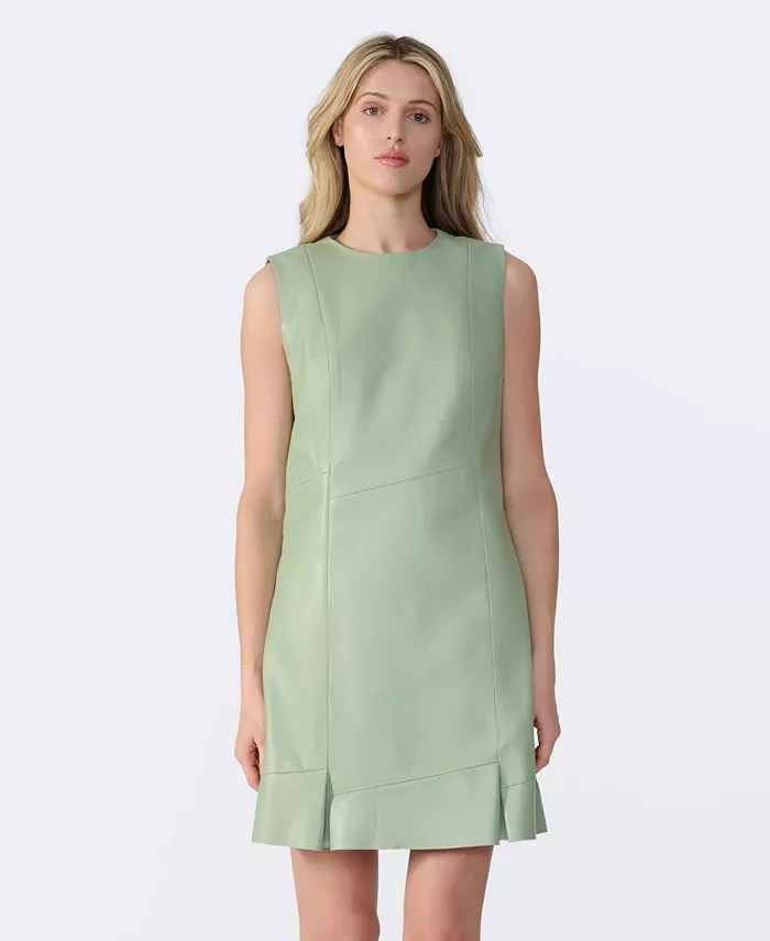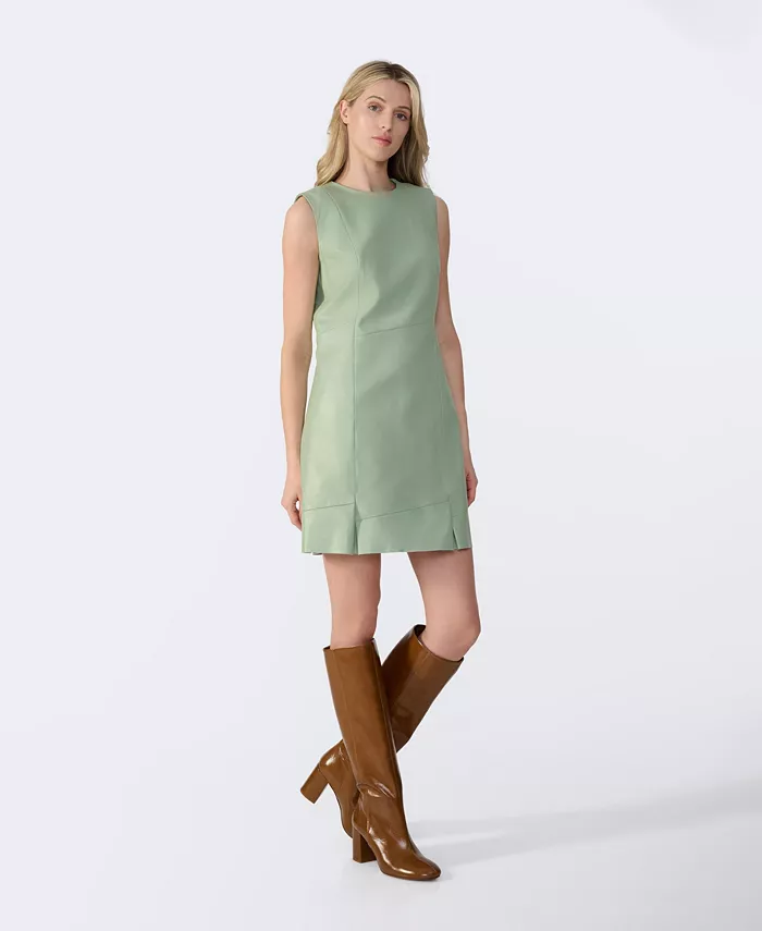 Шагните в весну в непринужденном силуэте. Это элегантное светло-зеленое платье выполнено из мягкой кожи, обеспечивая изящный баланс смелой изысканности и вневременного очарования.