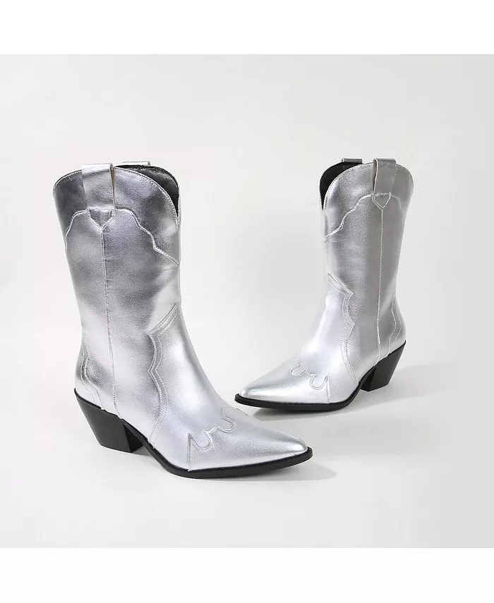 Ковбойские сапоги Kitty Western до середины икры BERNESS, серебряный