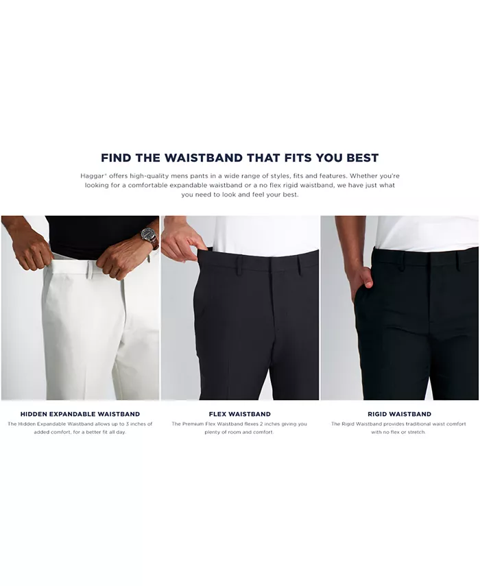 Мгновенно улучшите свой деловой стиль и повысьте комфорт с помощью этих простых в уходе классических брюк от Haggar, выполненных из облегающего кроя и ткани, которая тянется в четырех направлениях и отводит влагу.