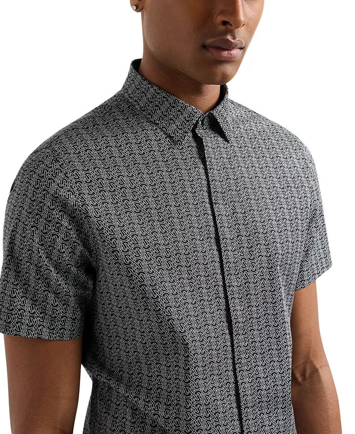 Эластичная хлопковая ткань и облегающий крой делают эту рубашку на пуговицах с логотипом от Armani Exchange образцом элегантности и комфорта.