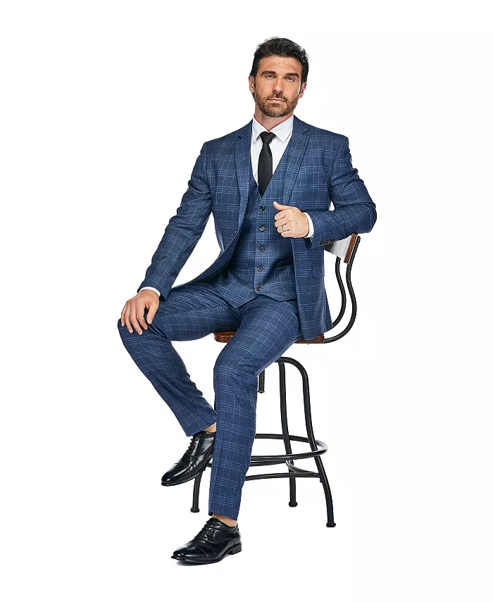 Мужской костюм Slim Fit 3PC в клетку Gino Vitale, синий