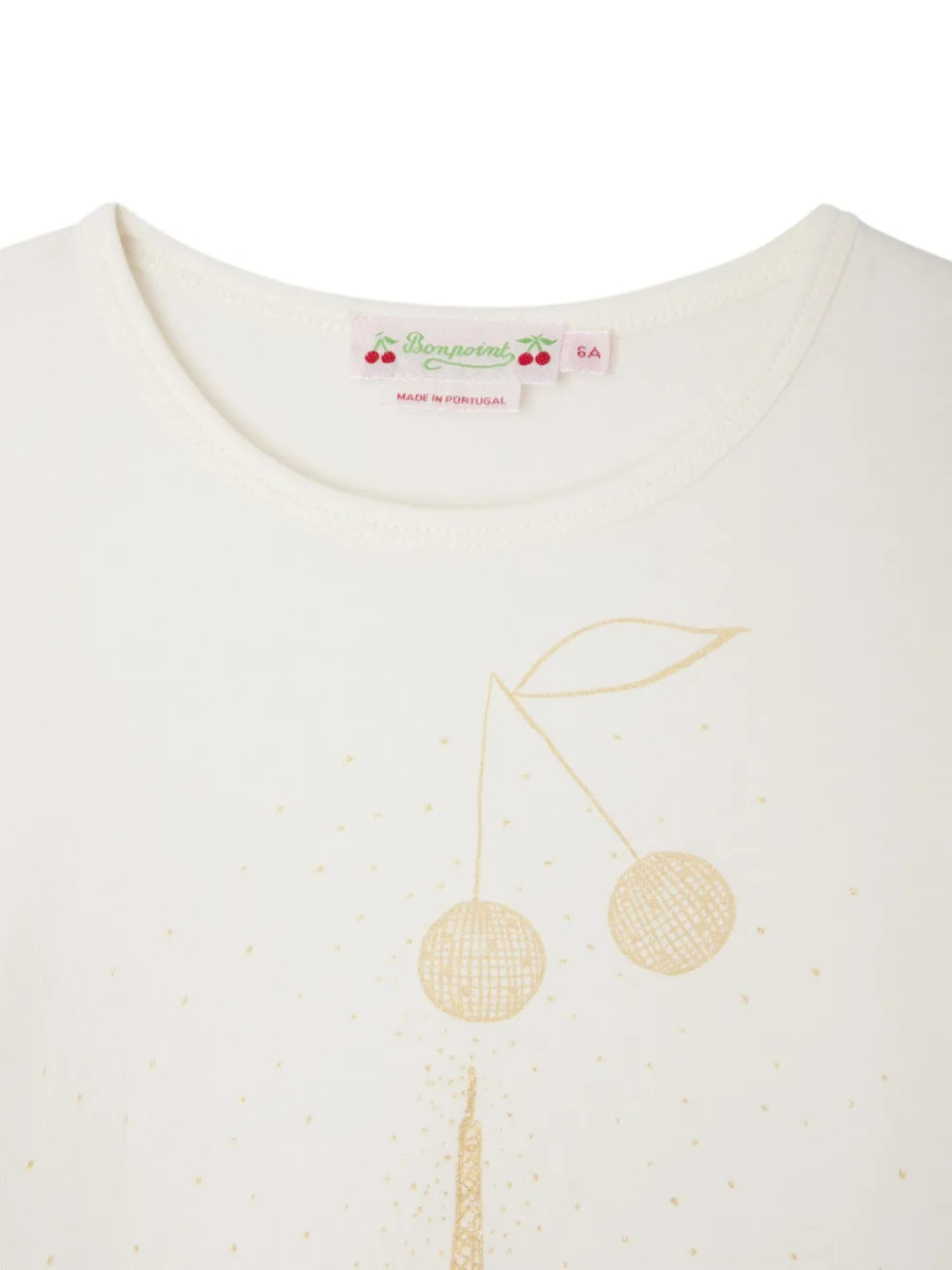 Футболка Bonpoint с изображением Эйфелевой башни и вишни, белый