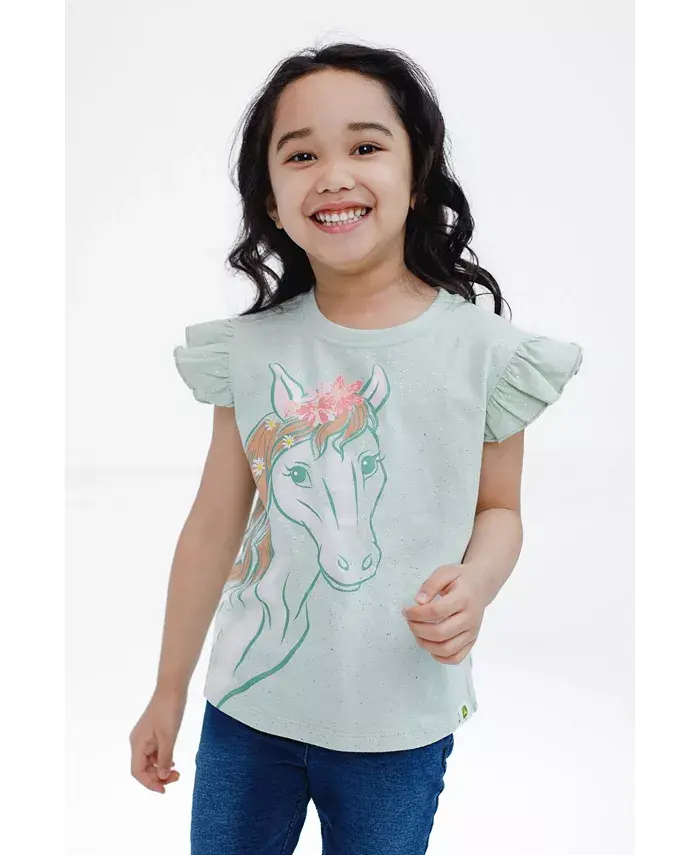 Поднимите летний гардероб вашей девочки с помощью этой яркой футболки John Deere! Изготовленная из мягкого хлопка, она обеспечивает стиль и комфорт для игр на весь день. Выбирайте из забавных дизайнов лошадей, животных на ферме или фермерских рынков.