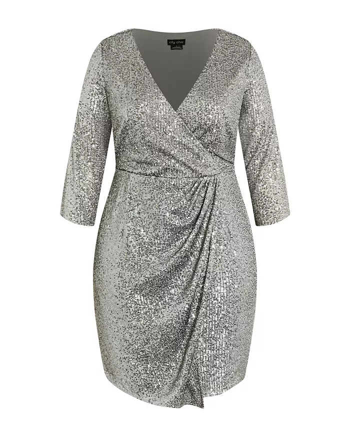 Платье Razzle больших размеров CITY CHIC, серебряный