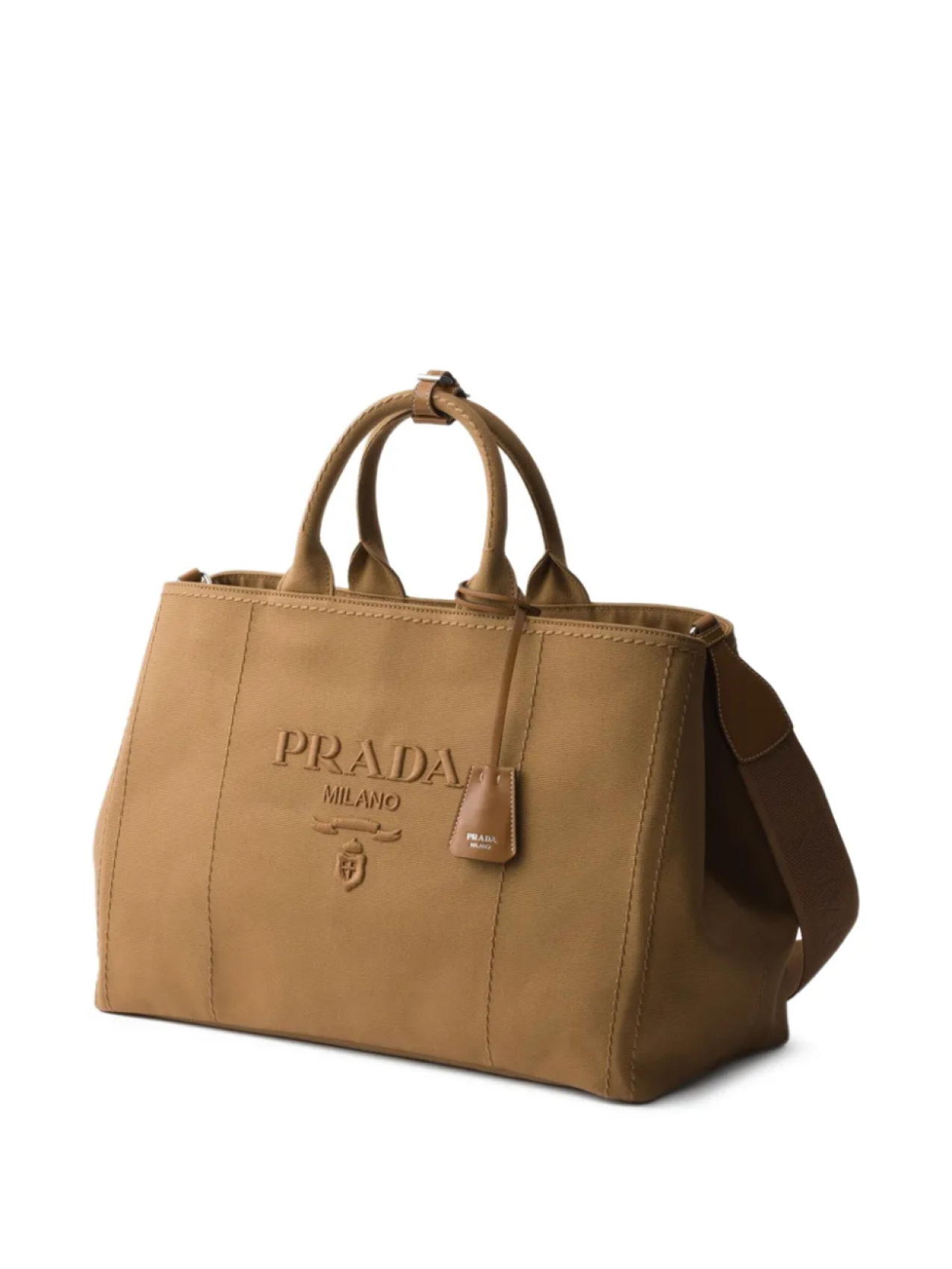 Prada сумка-тоут с тисненым логотипом, коричневый