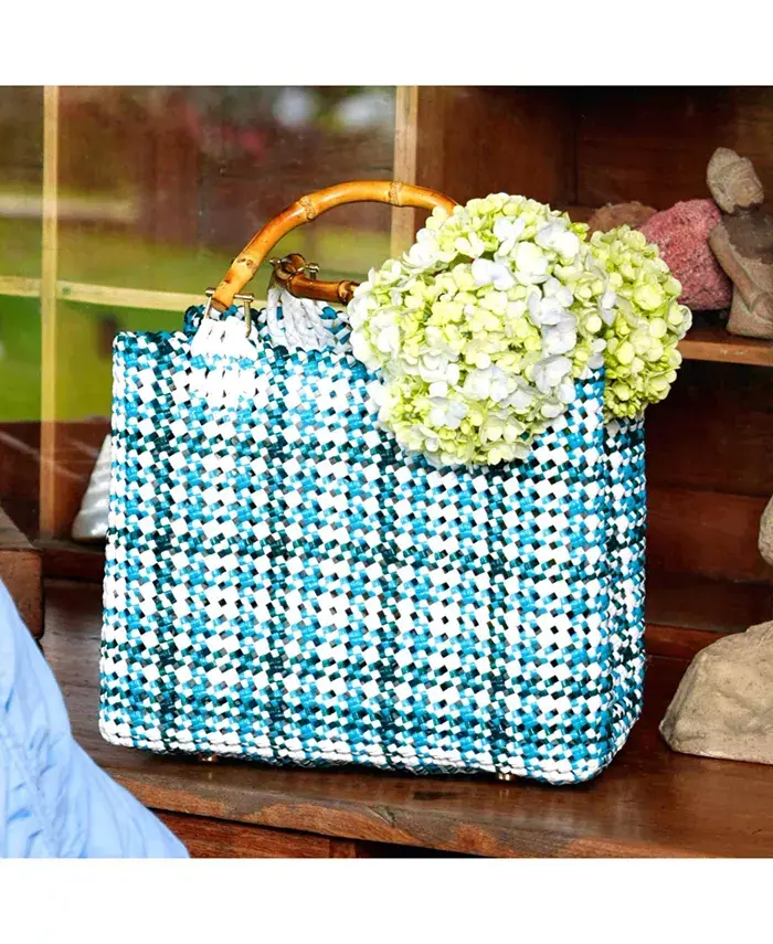 Пересказ истории. MARCHE переосмысливает пластиковые отходы, превращая их с помощью сложного плетения и продуманного процесса переработки в изделие, которое одновременно изысканное и долговечное. Вдохновленная очарованием местных фермерских рынков, MARCHE — это праздник простых удовольствий — аромата свежего урожая, радости открытия скрытых драгоценностей, тихой красоты повседневных ритуалов. Каждая сумка названа в честь любимого района или города в Калифорнии, места, которое мы с благодарностью называем домом. Разработанная с намерением, MARCHE отличается неподвластным времени клетчатым переплетением и гладкой ручкой, которая легко лежит в руке. Легкая, но структурированная, она идет с вами от залитых солнцем утренних рыночных дней до лунных прогулок — элегантный компаньон, куда бы ни привел день. Размеры: 10" x 8" x 6" Состав: 100% пластик Ручка: натуральная Включает внутренний хлопковый мешочек на шнурке для дополнительной универсальности. Изготовлено вручную на Яве, пропитано калифорнийским очарованием. Цвет: изумрудно-зеленый, белый и небесно-голубой.