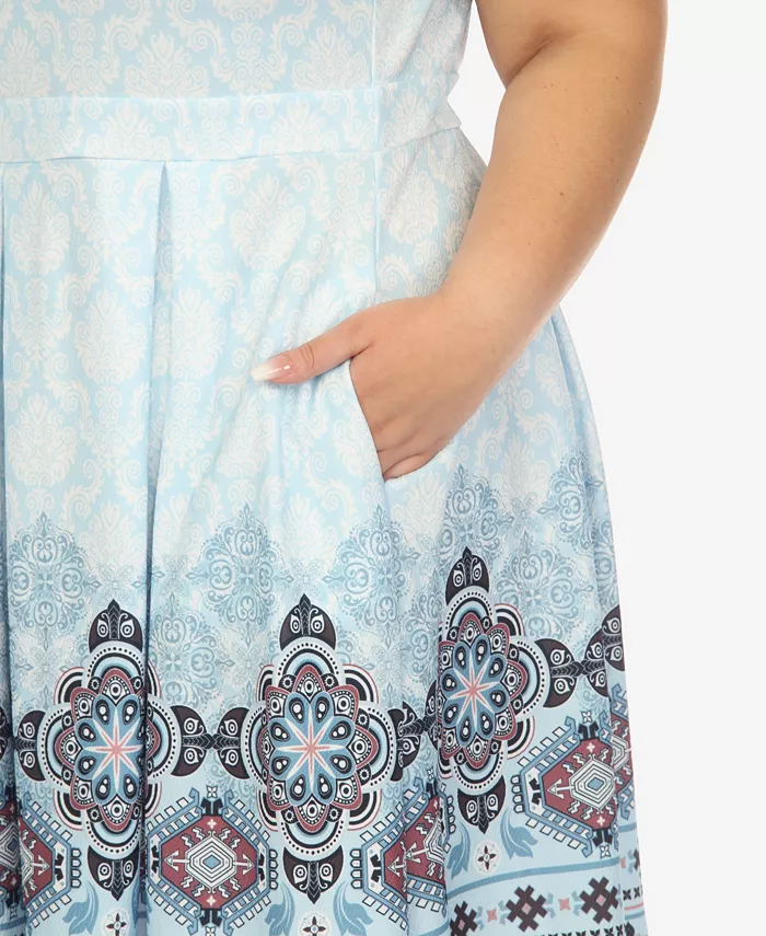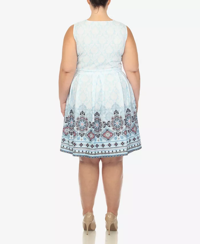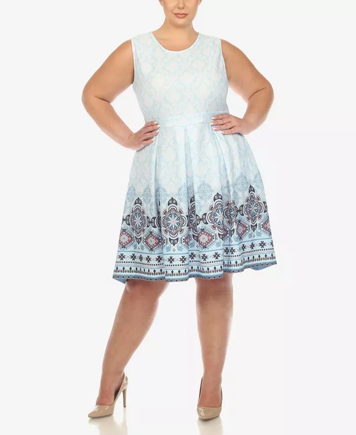 Платье приталенное с расклешенной юбкой до колена Plus Size White Mark, синий