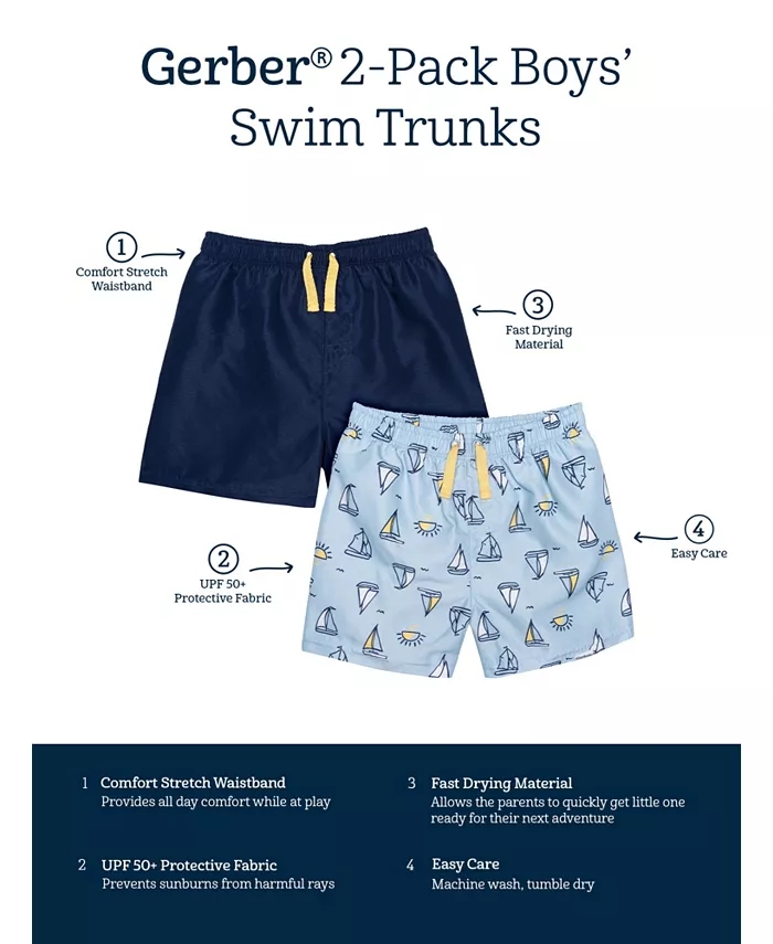 Этот дуэт плавок обеспечивает идеальное решение для вашего малыша, чтобы в полной мере насладиться солнечным днем ​​водных развлечений. Эти плавки обеспечивают защиту от солнца с помощью ткани UPF 50+ и комфортную подвижность благодаря эластичному поясу.