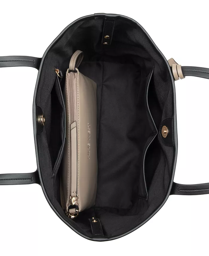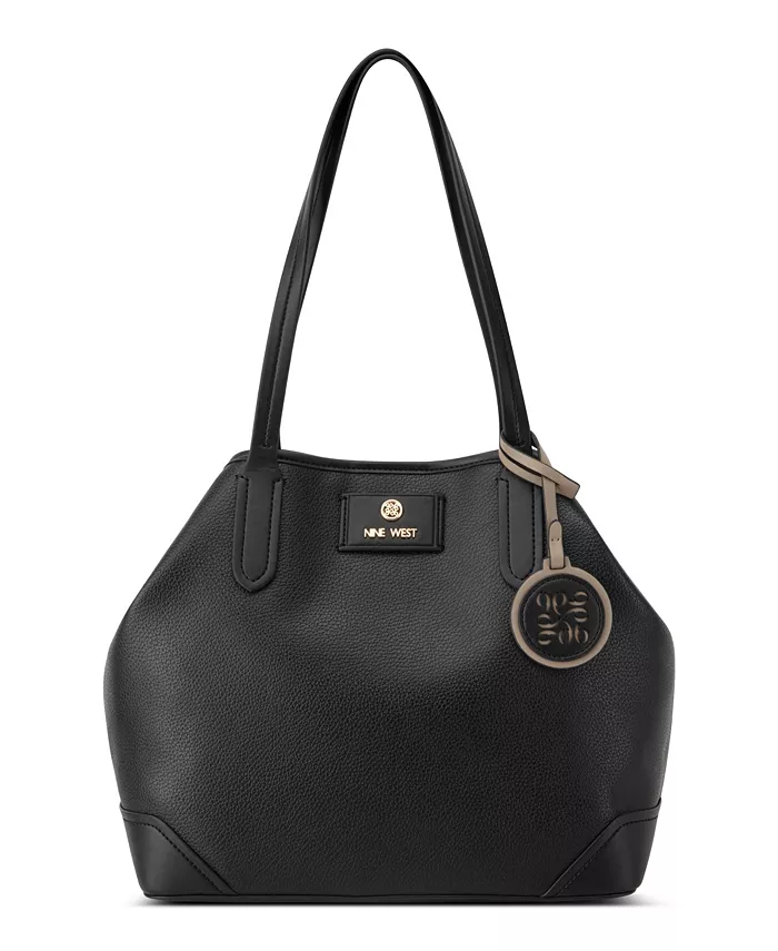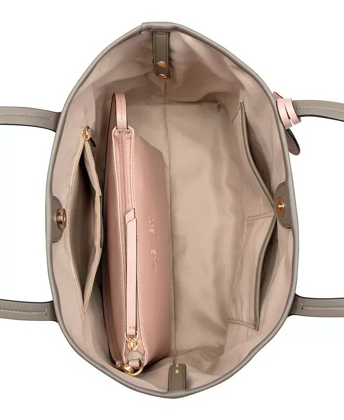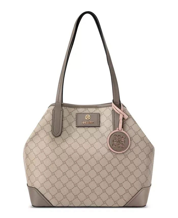 Сумка-тоут Piera 2 в 1 от Nine West Designer. Сумка-тоут застегивается на кнопку, создавая силуэт сумки на плечо, и включает в себя короткое плечо, которое можно использовать как забавную маленькую сумку, включая внутреннюю сумку для предметов первой необходимости в вашей подходящей сумке. Магнитная застежка и внутренние карманы-органайзеры. Фирменная булавка с замком.