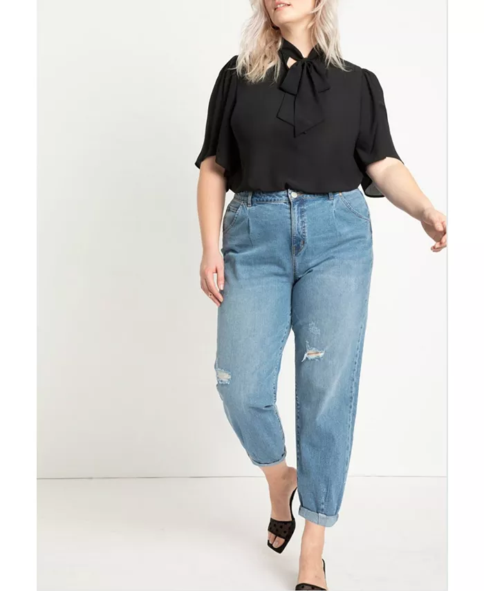 Женская блузка с бантом и расклешенными рукавами ELOQUII, черный