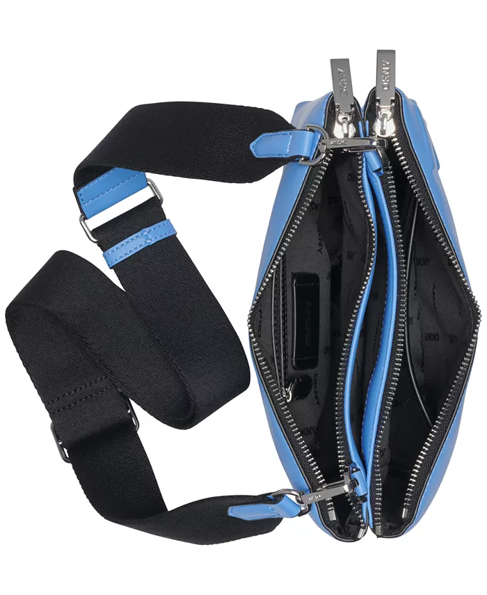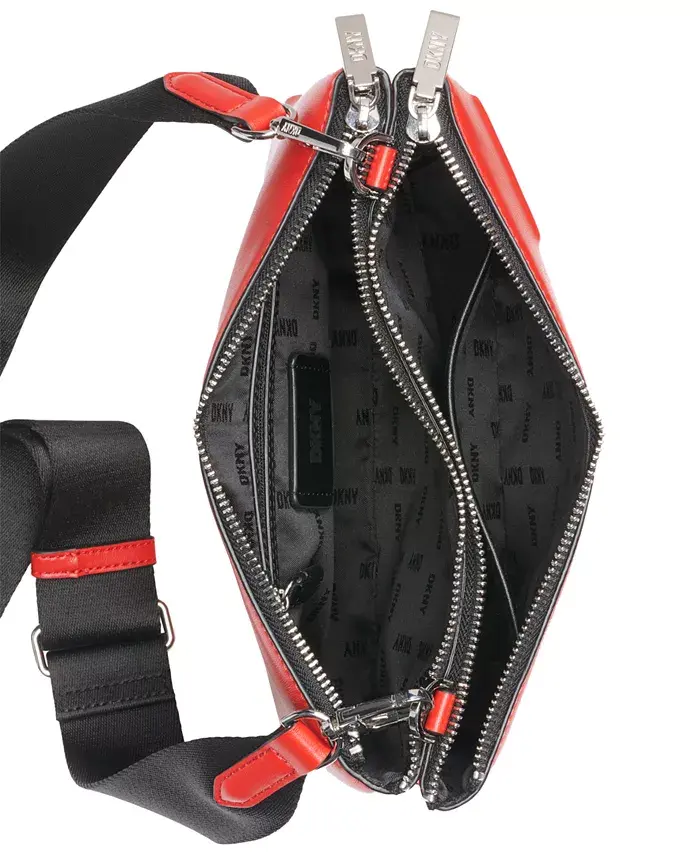 Несколько отделений на молнии упрощают организацию вещей в этой элегантной и современной сумке через плечо от DKNY.
