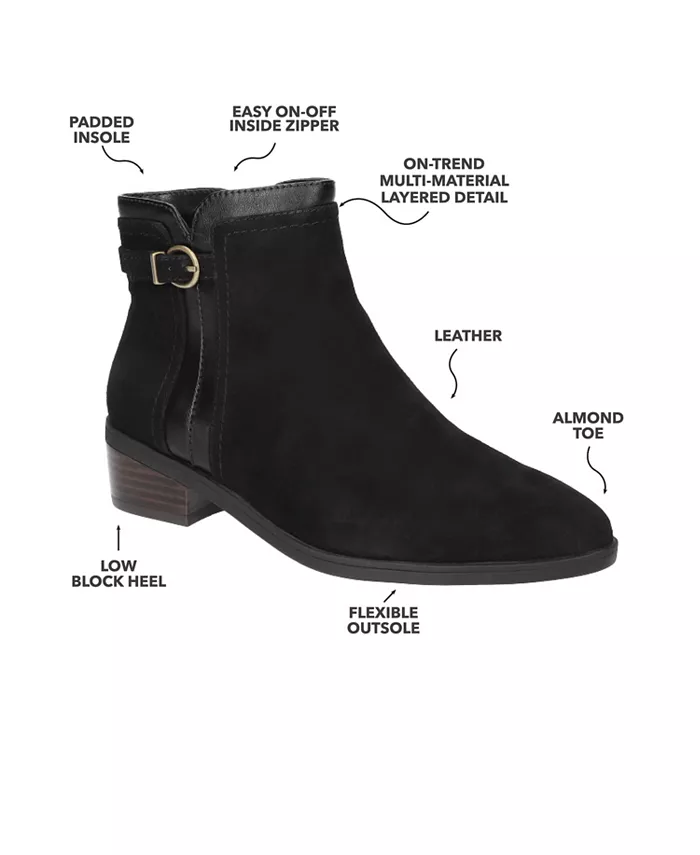 Миндалевидный палец ноги Модные детали в виде панелей и пряжек добавят элегантности вашему образу. Каблук 1,5 дюйма Резиновая подошва Доступно в размерах Узкая, Средняя, Широкая и Очень Широкая. Боковая застежка-молния. Окружность голени 11,5 дюймов, измеренная на 9M Высота вала 4,5 дюйма, измеренная на 9M Современный дизайн и комфорт на весь день Мягкая стелька для дополнительного комфорта Внутренняя молния для легкого надевания/снимания. Верх из кожи, подкладка из ткани Чистка пятен