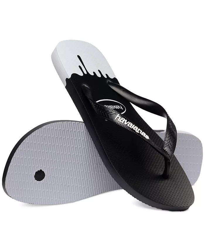 Это чернила на ваших шлепанцах? Сандалии Havaianas Top Ink Flip-Flop могут сыграть с вами злую шутку. Этот забавный принт на самом деле выглядит как очень модная чернильная случайность, сочетая логотип и цвет подошвы. Инновационно и стильно!