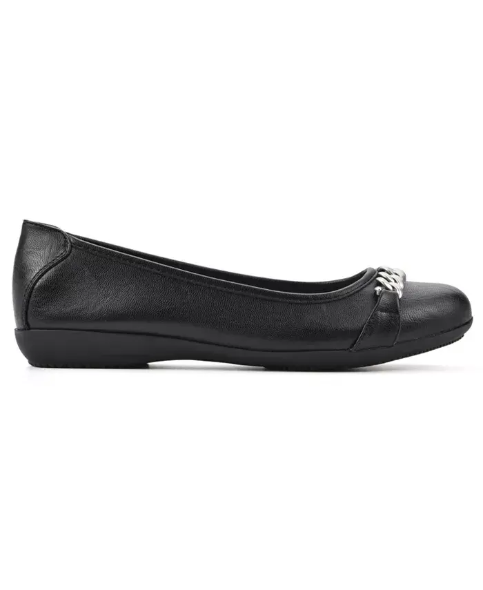 Универсальные туфли Charmed flat от Cliffs by White Mountain Shoes добавляют комфорт, гибкую подошву к классическому плоскому силуэту. В передней части этих универсальных туфель находится красивая цепочка, которая придает вам действительно изысканный вид.