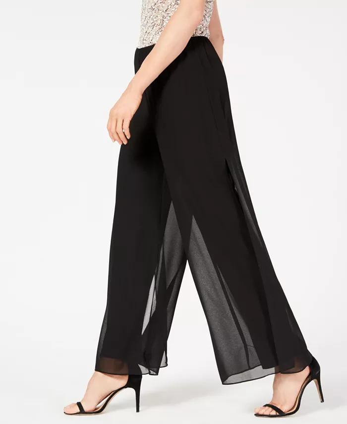 Создайте простую элегантность на следующем особом мероприятии с этими широкими шифоновыми брюками Alex Evenings. Прекрасно сочетаются с комплектом из пиджака и панциря.