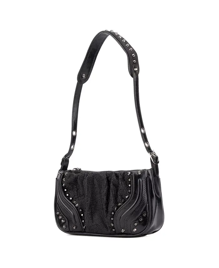 Приготовьтесь к грандиозному появлению с сумкой через плечо Bianca, настоящим хитом. Этот потрясающий аксессуар может похвастаться плиссированным дизайном, который излучает элегантность и утонченность. Он отличается привлекательными украшениями из стразов и смелой отделкой шипами для нотки авангардного гламура. Bianca сочетает в себе классический стиль с современным стилем, что делает ее идеальным украшением для любого случая. Подчеркните свой ансамбль и привлеките внимание с помощью этой ослепительной сумки через плечо.