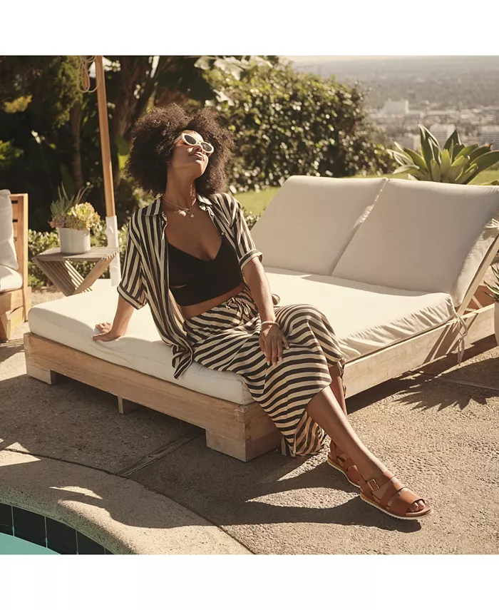 Женские сандалии, готовые к путешествиям, идеально подходят для отпуска или на каждый день. ИЗГОТОВЛЕНО: Мягкие подкладки из искусственной кожи с низким содержанием химикатов. МАТЕРИАЛЫ: Ремешки из искусственной кожи. ПОСАДКА: Ремешок на подъеме с регулируемой пряжкой для надежной посадки. КОМФОРТ: Технология стельки с анатомической амортизацией, комфортом и поддержкой. ДВИЖЕНИЕ: Легкая, гибкая конструкция движется вместе с вами. СТИЛЬ: Сандалии с ремешками для женщин с культовой деталью в виде пряжки, контурной стелькой и тонким каблуком-танкеткой из искусственного дерева высотой 1,25 дюйма с зубчатой подошвой. Положите эти сандалии с ремешками на стельке в чемодан или в шкаф и носите с чем угодно.