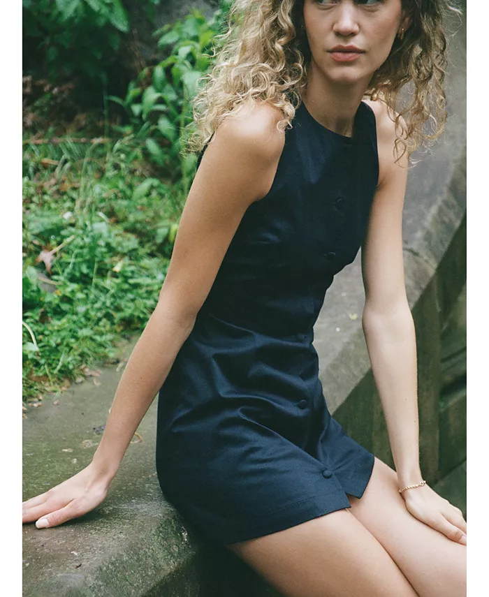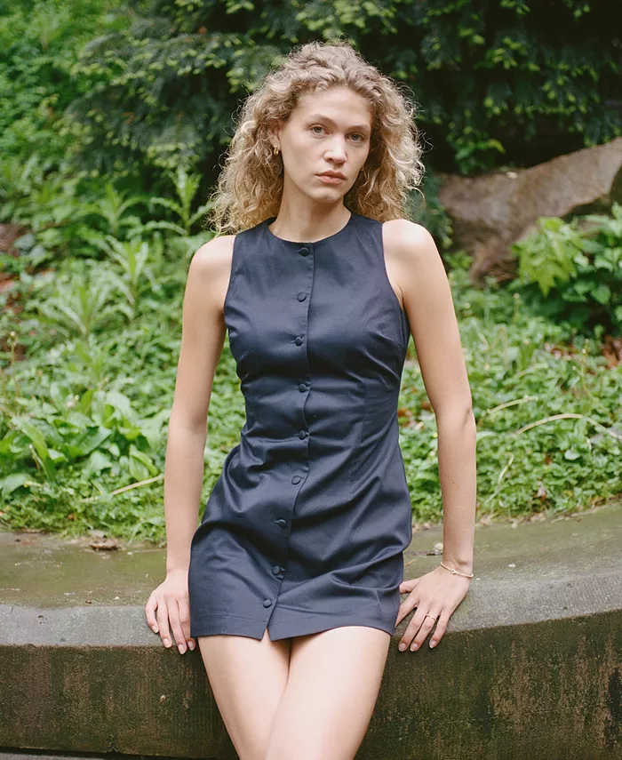 Изящное мини-платье без рукавов от French Connection сочетает в себе черты платья-футляра и платья-рубашки.