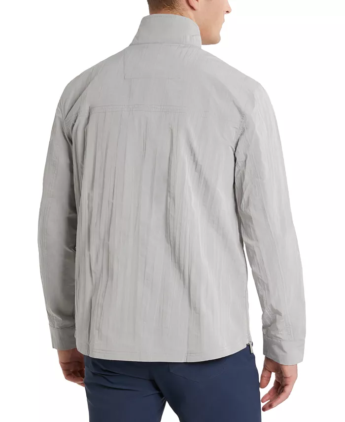 Пройдитесь по ветреной и дождливой погоде в этой влагоотводящей ветровке от Kenneth Cole с накрахмаленным воротником-стойкой и вместительным карманом спереди.