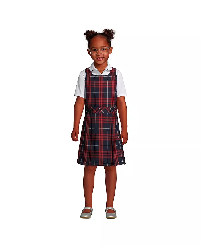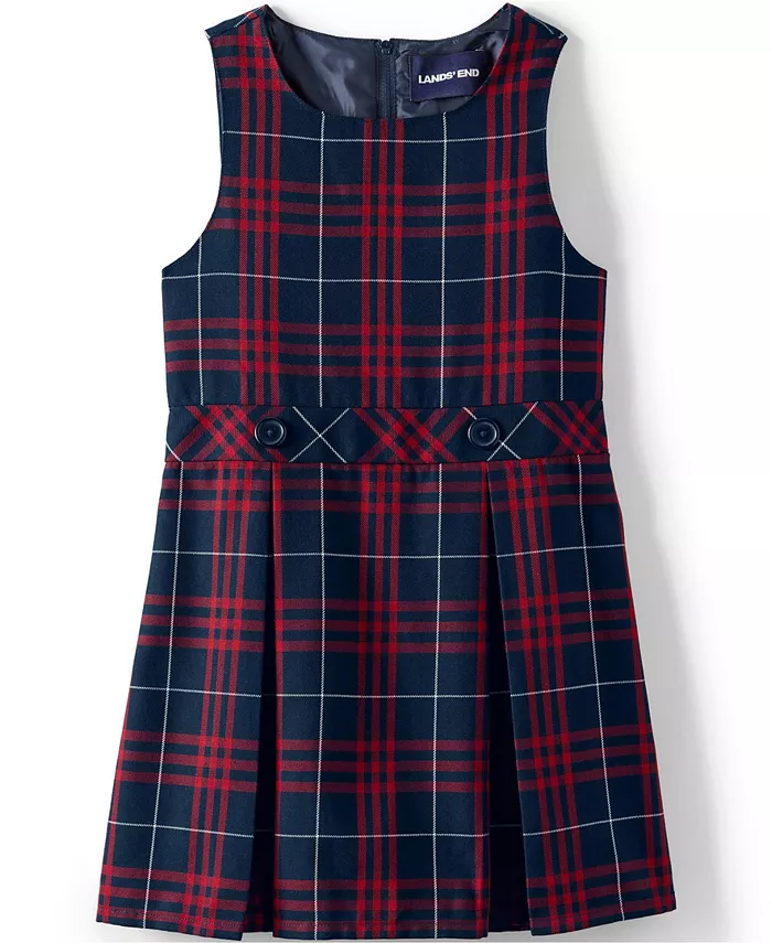 Школьная форма для девочек-подростков: клетчатое платье-джемпер до колен Lands' End, синий