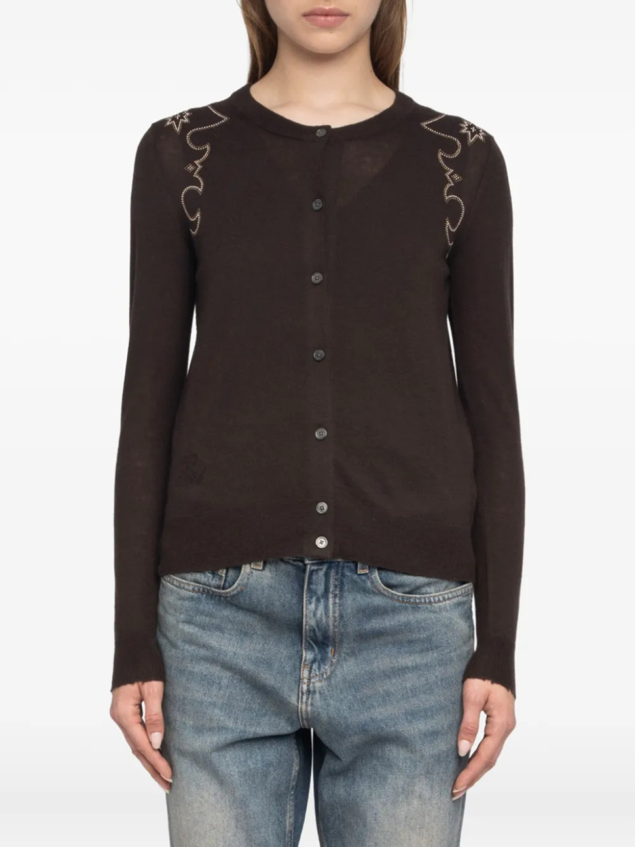 Кашемировый кардиган с декором Zadig&Voltaire, коричневый