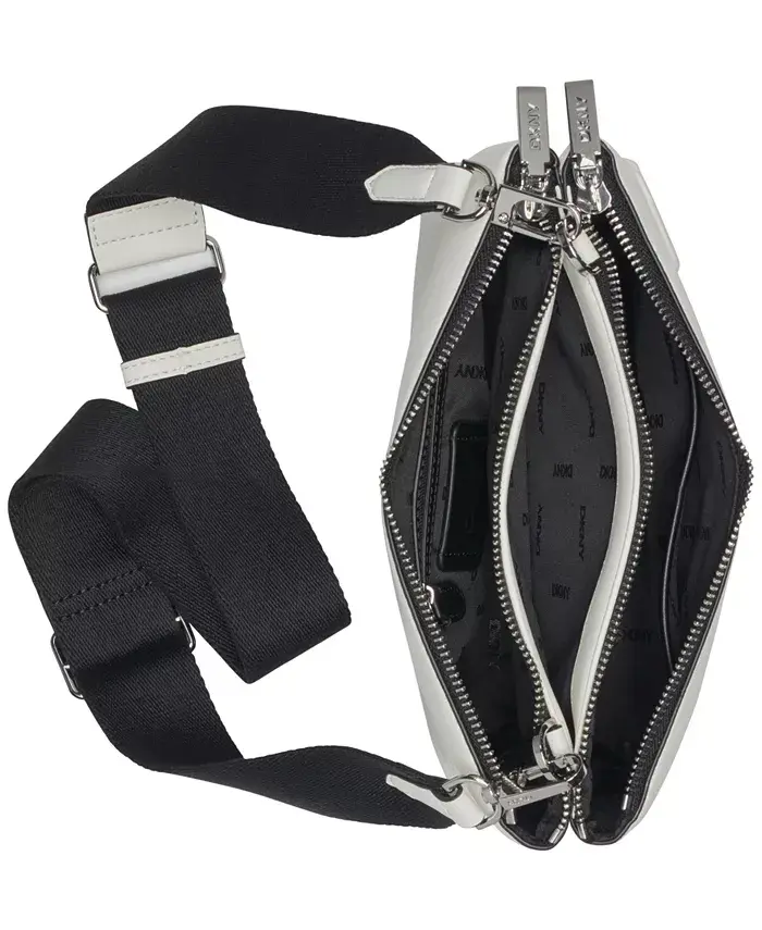 Несколько отделений на молнии упрощают организацию вещей в этой элегантной и современной сумке через плечо от DKNY.