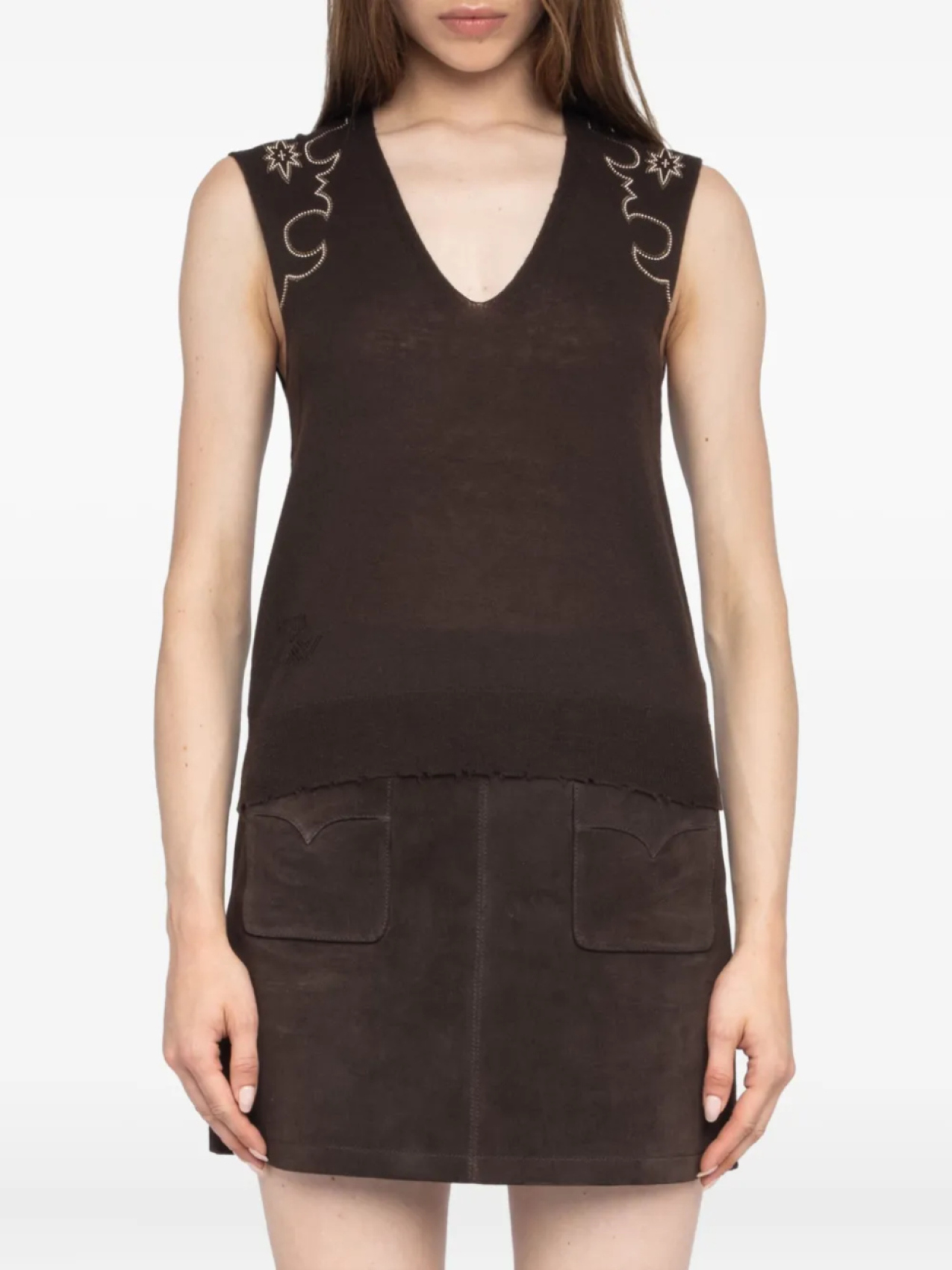 Топ без рукавов с декором Zadig&Voltaire, коричневый