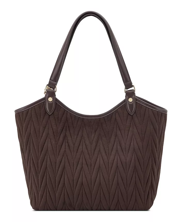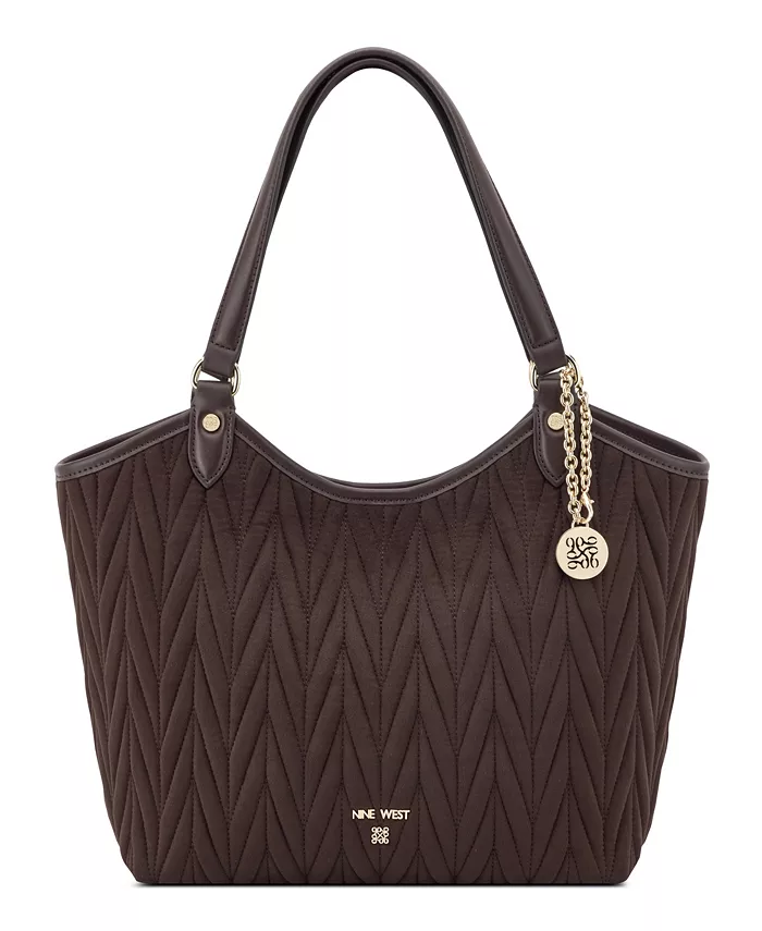 Сумка-тоут Jaslee 2 в 1 от Nine West с внутренним карманом-накладкой и карманом на молнии, а также внешними деталями фурнитуры и брендингом. Разработана с модным стеганым одеялом из искусственной замши с украшением в виде цепочки и дополнительной сумкой на плечо в комплекте.
