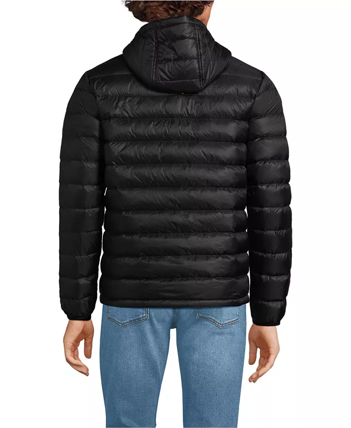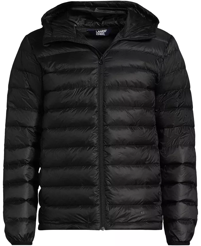 Мужская утепленная куртка с капюшоном Wanderweight Packable Down Lands' End, черный