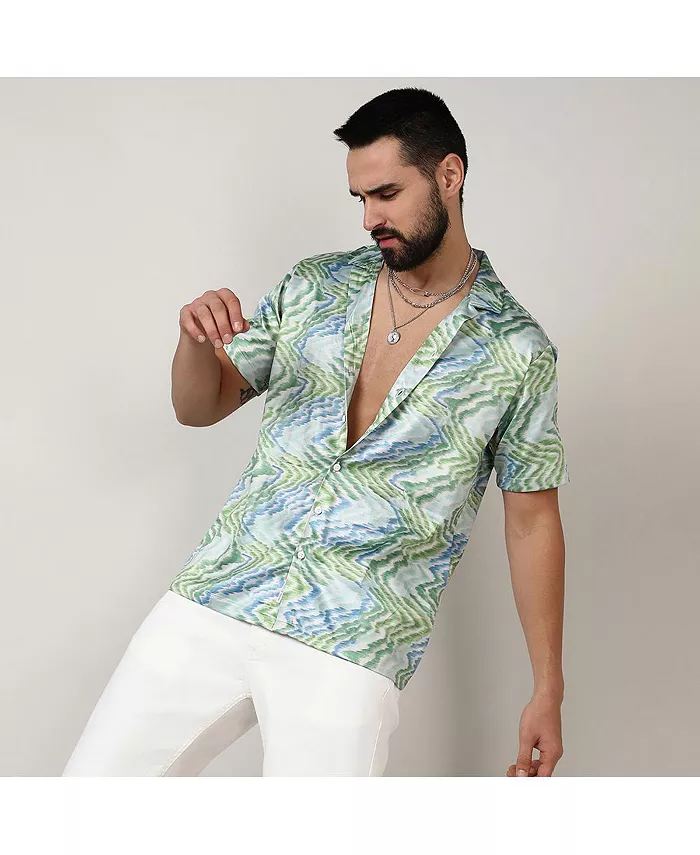 Мужская рубашка Grass Green & Navy Blue Ripple Campus Sutra, синий 8 960₽