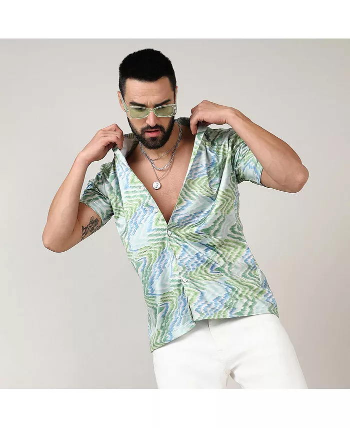 Мужская рубашка Grass Green & Navy Blue Ripple Campus Sutra, синий