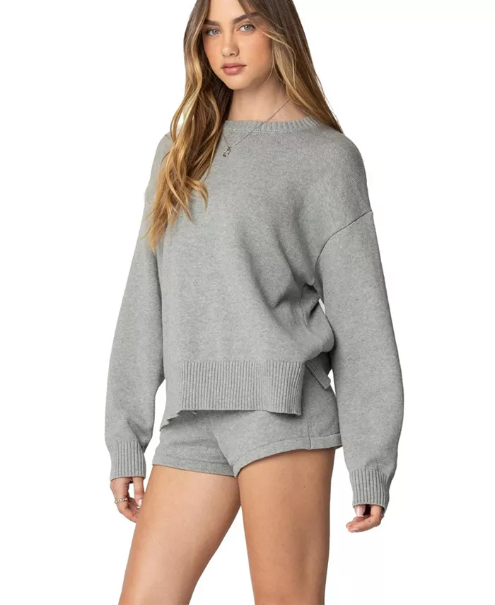 Женский оверсайз свитер Riley вязаный Edikted, серый