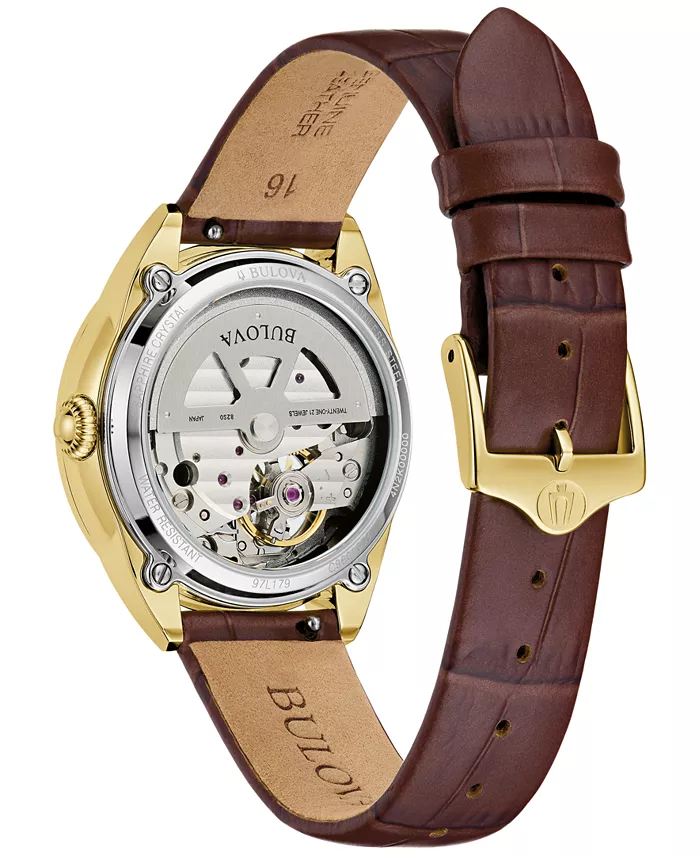 Женские часы Sutton Automatic с коричневым кожаным ремешком, 34.5 мм Bulova